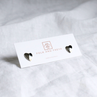 Each heart is made from solid sterling silver which has been hand sawn, filed, sanded, shaped and polished. No two are exact, which is the beauty of the hand made process. Shaped with a slight concave, they sit snug around the earlobe. Finished with a high polish. Choose your favourite size from either small or large: