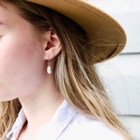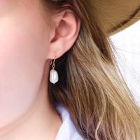 Elegant and modern, the Nadine pearl earrings are a perfect adornment for any occasion and would make a beautiful accessory for your special day.